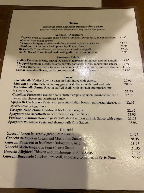 Spumoni Restaurant, located at 14533 Ventura Blvd in Sherman Oaks, CA, offers a casual and welcoming atmosphere with a variety of Italian dishes. The menu includes delicious pastas, fresh bread, flavorful entrees like Chicken Limone and Linguine Al Pesto, and amazing desserts like tiramisu. Customers rave about the impeccable service and personal touch from the owner, Valsik. The restaurant also provides vegetarian options, accepts various payment methods, and offers outdoor seating. With a warm and inviting ambiance, Spumoni Restaurant is a must-visit for those craving authentic Italian cuisine in a cozy setting.
